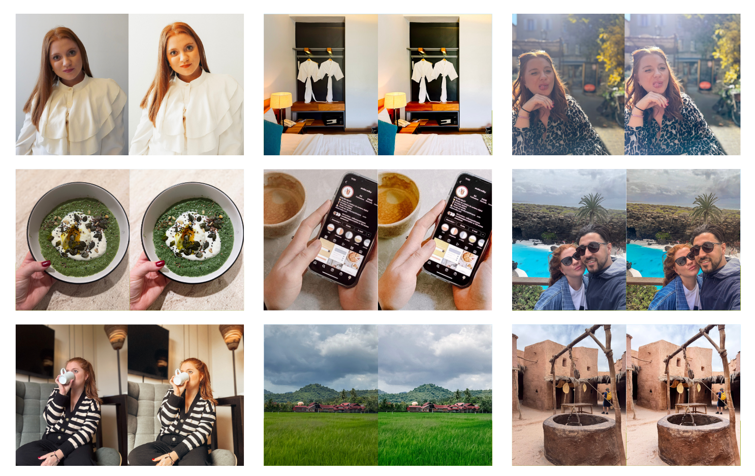 Ces préréglages ont été conçus pour sublimer tous les types de photos portraits, paysages, food, voyages, déco ou lifestyle avec un rendu professionnel, harmonieux et lumineux, directement depuis votre téléphone.
